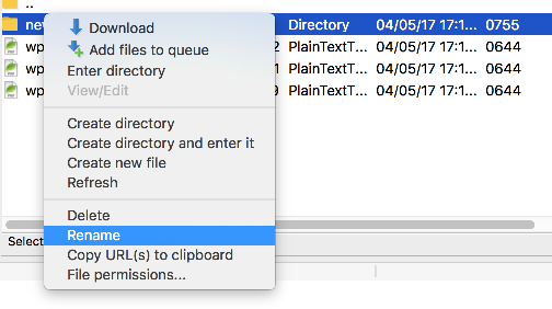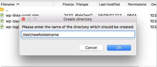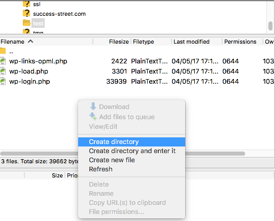 1) Right-click anywhere here in the remote server window. Then click Create directory.