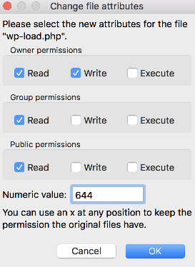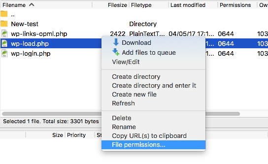 6) Right-click the file wp-load.php. Select File Permissions.